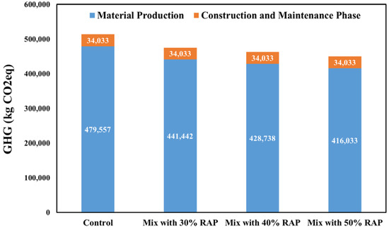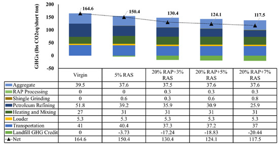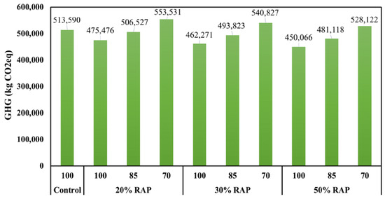 GHG emissions for different RAP content [75].