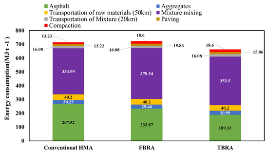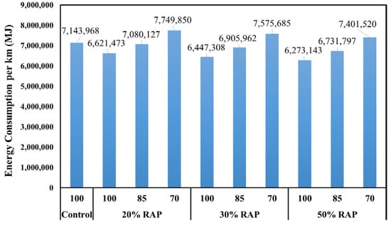 Energy consumption for different RAP content [75].