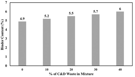 Table 8 shows how recovered binder from 20% and 40% of RAP can reduce the amount of total as well as virgin binder needed based on Superpave mix design [76]. Doubling RAP content leads to approximately twice the reduction in virgin binder content. Therefore, not only does the introduction of RAP decrease the amount of virgin aggregate in asphalt mixtures, but it also lessens the most valuable component of them, i.e., asphalt binder.