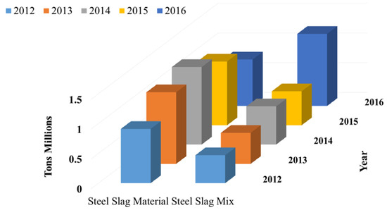 - Ahmedzade, P.; Sengoz, B. Evaluation of steel slag coarse aggregate in hot mix asphalt concrete. J. Hazard. Mater. 2009, 165, 300–305. [Google Scholar] [CrossRef]