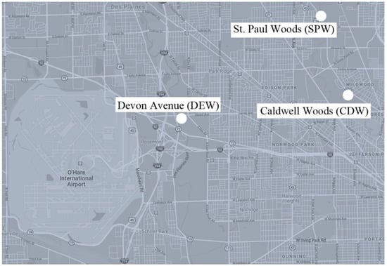 The Metropolitan Water Reclamation District of Greater Chicago monitors CSO activity and notifies the public when the CSO systems actively discharge sewage. CSO systems are located along waterways throughout the Greater Chicago Area. All samples were collected within one week after active discharge events. The following three CSO sites (Figure 1) were selected because of their accessibility via public parks.