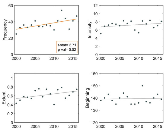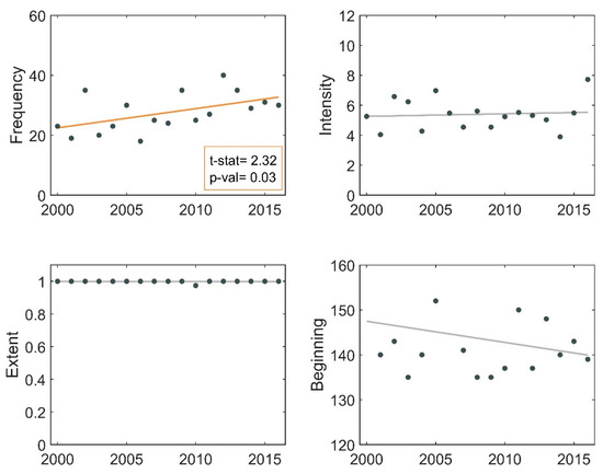 | Mean temperature—annual | −0.13 | −0.47 | 0.03 | 0.00 | |