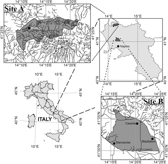 - Putignano, M.L.; Ruberti, D.; Tescione, M.; Vigliotti, M. Evoluzione recente di un territorio di pianura a forte sviluppo urbano: La Piana Campana nell’area di Caserta. Boll. Soc. Geol. Ital. 2007, 126, 11–24. [Google Scholar]