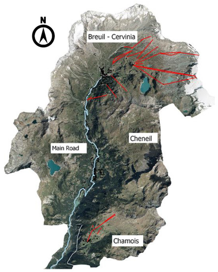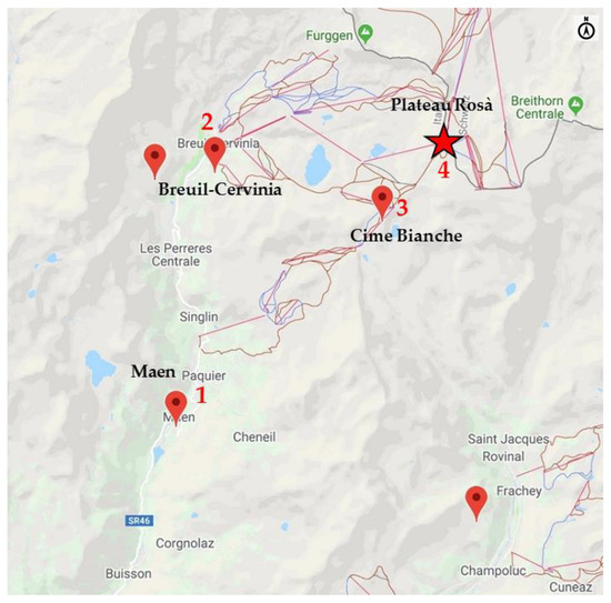 Table 1 reports the main characteristics of the tourist resorts studied in Valtournenche, in terms of the start/end of the expected 2019–2020 winter ski season, the minimum and maximum elevation above the sea level, the number of ski lifts and the length of the ski slopes [13].