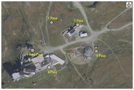 The Plan Maison area, at 2500 m a.s.l (Figure 8), was chosen to set up the short-term measurements near the fixed points in the ski area, which extends from the village center, at 2000 m a.s.l., to the Plateau Rosà glacier, at 3500 m a.s.l. No short-term measurements were conducted in the highest part of the ski area because the two long-term measurement points at the Cime Bianche Lake and at Plateau Rosà were considered to be representative of the entire ski area (Figure 9).