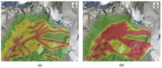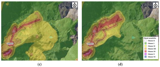 Acoustic classification—(a) the Breuil-Cervinia ski area; (b) the Breuil-Cervinia ski area in the winter season; (c) the Chamois ski area; (d) the Chamois ski area in the winter season. Source: http://geonavsct.partout.it/pub/GeoCartoSCT/index.html.