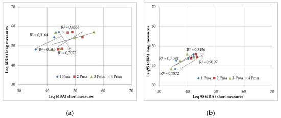 The correlation between the fixed station sound levels and those from the relative short-term measurement stations was found to be good for the background levels quantified by LAeq95, but less significant for LAeq, due to individual events that take place in these mountain sites.