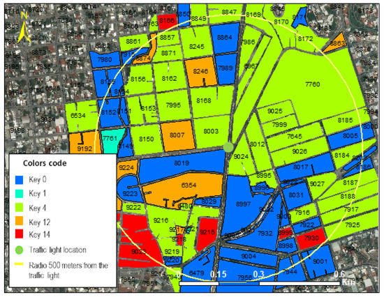 To determine the clusters’ statistical and geographical data, censuses were used [2]. Because we had no access to housing data, a radius of 500 m was chosen using blocks instead of AGEBs (geographical areas according to its acronym in Spanish, Table 1). For example, at the traffic light “Ejido and Constituyentes”, if the main junction is taken as the center and measured within 500 m according to block delimitation, 93 blocks are selected.