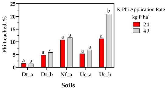 3.2. Phosphite Interaction in the Leached Soils