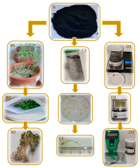 - MicroBioTests Inc. Phytotoxkit. Seed Germination and Early Growth Microbiotest with Higher Plants; Standard Operation Procedure: Nazareth, Belgium, 2004; Available online: https://www.microbiotests.com/wp-content/uploads/2019/05/Phytotoxicity-test_Phytotoxkit-solid-samples_Standard-Operating-Procedure.pdf (accessed on 15 October 2021).