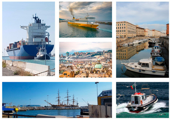 Only the ships that yield a significant contribution to noise, i.e., the noisiest or most frequent, should be considered. This would include all the commercial and passenger ships like RoRo, cruises, container ships, tankers, and so on. Smaller vessels like recreational crafts, law enforcement vessels, and fishing boats should be considered only if explicitly required or when a particular disturbance emerges locally. In fact, while their low number currently does not represent an issue for cities like Livorno [30], water transport system could represent an issue for coastal or riverfront cities, such as Hamburg, Bordeaux, Amsterdam, and Venice in the form of water taxi, water bus or private boats noise pollution. In these cities, water transport can be considered as a stand-alone category for a proper assignment of responsibilities in case of noise exceedance.