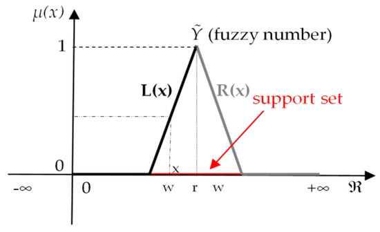 A symmetric triangular fuzzy number (STFN) (Figure 1) is a special kind of fuzzy number of which the membership function is expressed by the following equation: