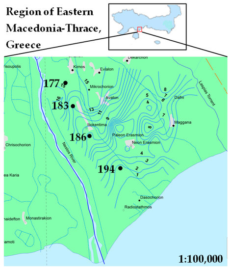 - Sakkas, I.; Diamantis, I.; Pliakas, F. Groundwater Artificial Recharge Study of Xanthi-Rhodope Aquifers (in Thrace, Greece); Greek Ministry of Agriculture Research Project, Final Report; Sections of Geotechnical Engineering and Hydraulics of the Civil Engineering Department of Democritus University of Thrace: Xanthi, Greece, 1998. (In Greek) [Google Scholar]