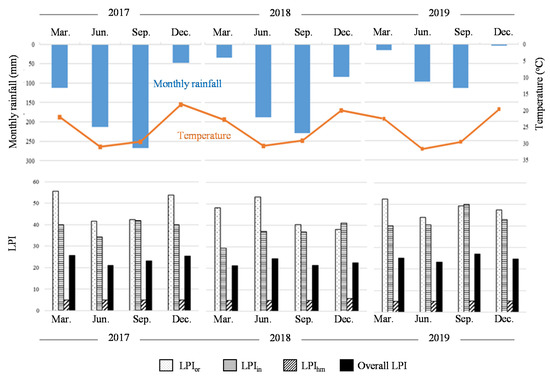Seasonal variation in the LPI values of Nam Son landfill leachate from 2017 to 2019.