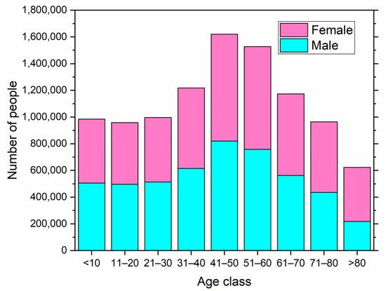 The population in Lombardy is of about 10 million people, with about 4.5 million families (the average number of family members is 2.2). The population distribution for age is reported in Figure 2, indicating close to 50% in sex ratio and the more abundant class of population aged between 41 and 50 years. This age class is the most active population, which moves for work and family reasons (see Table 1).