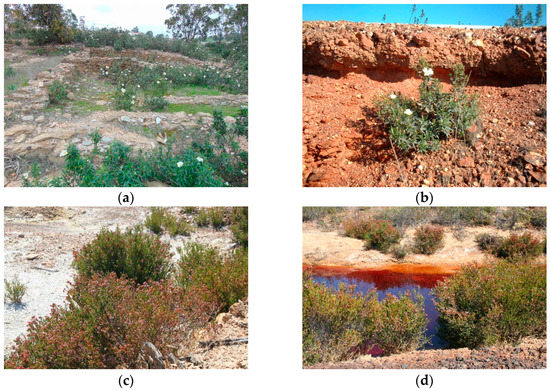 - Pérez-López, R.; Márquez-García, B.; Abreu, M.M.; Nieto, J.M.; Córdoba, F. Erica andevalensis and Erica australis Growing in the Same Extreme Environments: Phytostabilization Potential of Mining Areas. Geoderma 2014, 230–231, 194–203. [Google Scholar] [CrossRef]