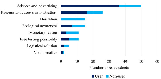 Motivation of co-compost users and non-users to try co-compost (N=120 and N=15 for multiple choices). N = number of respondents.