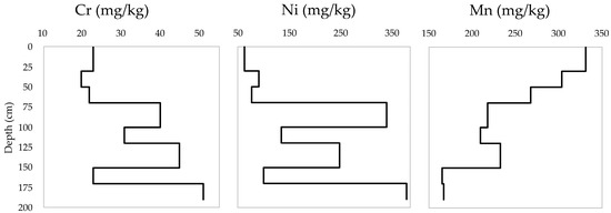 Vertical distribution of Cr, Ni and Mn concentrations in mg/kg.
