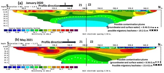 - Udosen, N.I. Geo-electrical modeling of leachate contamination at a major waste disposal site in south-eastern Nigeria. Model. Earth Syst. Environ. 2021, 1–10. [Google Scholar] [CrossRef]