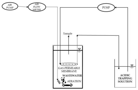 The TAN recovery efficiency was equal to the TAN recovered in the acidic trapping solution divided by the TAN removed from the wastewater and multiplied by 100.