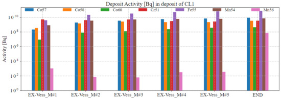 Table 1 shows the numerical values of the deposit activities in Bq during the ex-vessel maintenance for the Heat Exchanger.