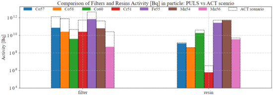 A comparison between the evaluated activities with the two scenarios is here considered (see Figure 6 and Figure 7). The activation scenario seems to be more conservative for the deposit activities in the Heat Exchanger and the activities in filters and resins. This kind of result is particularly interesting, showing a quite relevant dependency on the scenario chosen for the calculation. In corrosion problems time constants are different from those characterizing the usual nuclear analyses and an optimal scenario should be considered. Validation procedures for the choice of the most representative scenario in DEMO PHTS analyses will be conceived and performed in future work.