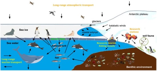 - Bargagli, R. Environmental Contamination in Antarctic Ecosystems. Sci. Total Environ. 2008, 400, 212–226. [Google Scholar] [CrossRef] [PubMed]