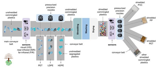 - Scott, David M. 1995. A two-colour near-infrared sensor for sorting recycled plastic waste. Measurement Science and Technology 6: 156. [Google Scholar] [CrossRef]