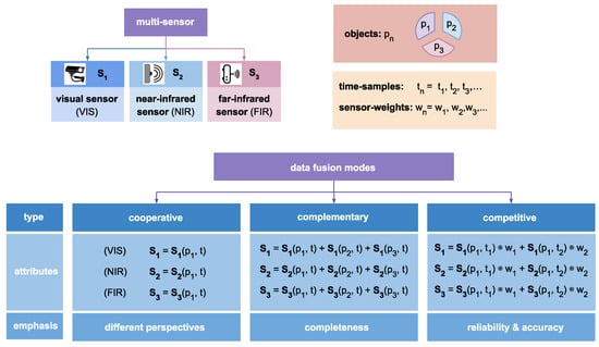 Multi-sensor cooperative, complementary, and competitive data-fusion modes.