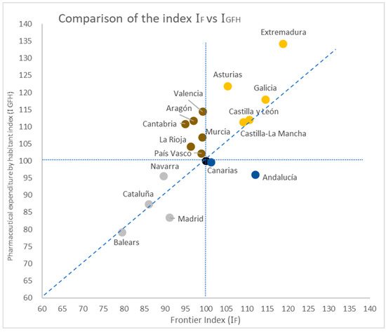 | IF | Pharmaceutical Expenditure by Inhabitant | IGFH | Distance to Bisector IGFH = IF | |