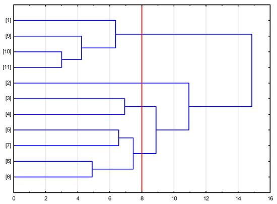 In the next step of the research, an attempt to group major threats that co-occur in the analysed municipalities was made. To do so, the Ward’s hierarchical clustering method was applied. This method aims to minimize the sum of squares of deviations of any two clusters that can be formed at any stage (Ward 1963). As a measure of distance between considered objects with the standard Euclidean distance was adopted. In the study, the algorithm aimed to group eleven of the aforementioned variables into the larger clusters. The performed analysis leads to distinguishing several groups of threats that seem to co-occur in the analysed municipalities (cf. Figure 6). These areas are: