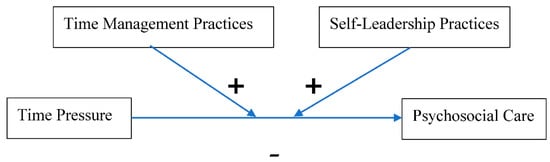 Metaconjecture 3:In situations where nurse managers face increased time pressure, proper application of self-leadership practices can improve psychosocial care; i.e., self-leadership practices positively moderate the negative relationship between time pressure and psychosocial care.