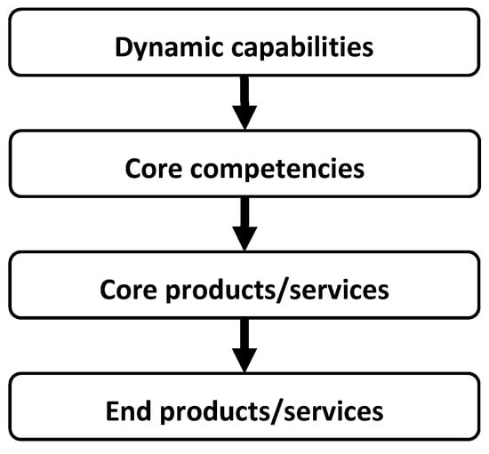 Relationships between dynamic capabilities, core competencies, core products and end products.