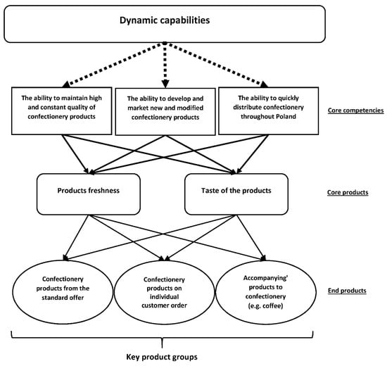 This article deals with the relationship between dynamic capabilities and core competencies of companies. Both categories extend the resource-based view of the firm. They are difficult to work out, but thanks to their durability and universality they enable to achieve a sustainable competitive advantage. Due to intensive changes in the business environment and increasing difficulty in forecasting them, the importance of adaptability based on both categories increases. The presented results of the research of two leading Polish companies—Panek S.A. and Cukiernia Sowa—are practical examples of the impact of dynamic capabilities on the creation of core competencies and indirectly core and end products and services. The analysis is the basis for improvement of future research.