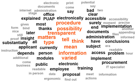 The frequency of the occurrence of individual words related to transparency in the transcripts of the conducted interviews is presented in Figure 2. The interviewees most frequently used such words as “procedure”, “possibility”, “matters”, and “information”.