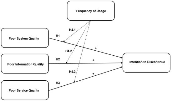 The research model builds upon the information system success (ISS) model (DeLone and McLean 2003) as the theoretical foundation. The ISS model suggests that system quality, information quality and service quality, as object-based beliefs, directly affect intention to use, thus allows exploring direct relationships between technology artefact characteristics and continuance intention. However, for the purposes of this study, we modify the ISS model to investigate users’ discontinuous intentions from the perspective of inhibitors. In this regard, IS research that concerns discontinuance has illustrated that IS discontinuance relies on factors and effects different from those used for explaining IS continuance, thereby merits its own theorizing (Maier et al. 2015; Pollard 2003; Turel 2016). Thus, we follow Soliman and Rinta-Kahila (2020) and focus specifically on users’ discontinuous rather than continuous intentions, given these intentions are qualitatively different in terms of the ultimate user behavior: quitting an IS use versus (still) using it (Rogers 2003). For example, Soliman and Rinta-Kahila (2020) argue that “while decreasing usage could be a significant predictor of IS discontinuance behavior (Khan et al. 2015), … it should not be considered as a reflection of discontinuance” (p. 10).