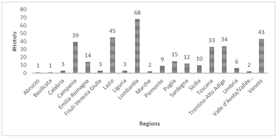 The analysis was conducted on a set of multidimensional indicators to evaluate the different impacts caused by a family member on firms’ performance. The choice to adopt different indicators follows as evidenced in prior studies about value creation (Caputo et al. 2014; Rai 2016). In particular, the research consists of an empirical analysis conducted on a sample of 343 Italian Hotel (Figure 1). The 343 Hotel represents the entire population of Hotels with more than 50 employees included in the AIDA database that has published financial statements in 2019. The choice to include only the Hotel with more than 50 employees has been driven by the exigence to analyze a sample of comparable firms. Thus, the exclusion of microenterprises avoids the risks related to the analysis of non-comparable data.