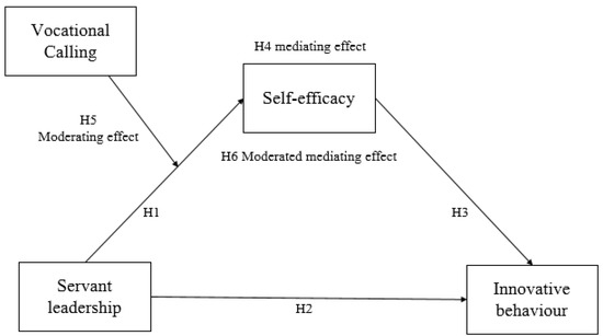 Vocational calling will moderate the mediating effect of self-efficacy in the relationship between servant leadership and innovative behaviour.