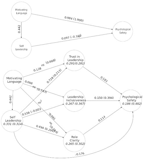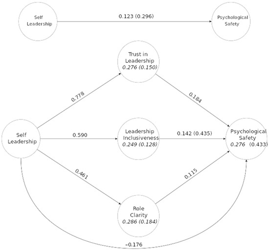 | RQ2: Do the constructs of trust in leadership, leadership inclusiveness, and role clarity fully or partially mediate the relationship between worker self-leadership and psychological safety? | The constructs partially mediate the relationship in both nations |