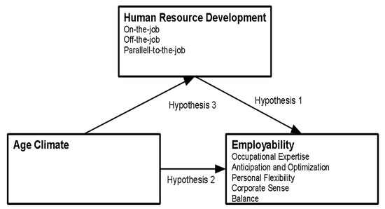Therefore, this article focuses on two influences on employees’ employability that address the topics of aging and development, both of which have been identified as important antecedents of employability in more general settings. First, we focus on an organization’s offering of HR developmental activities. To take a rather broad view on this matter, we include on-the-job, off-the-job, and parallel-to-the-job measures. Second, we consider the age climate fostered by the organization as an arguably softer element of organizational influence. After all, Hedge (2008) has mentioned age management and cultural aspects as a major lever of strategic HR management to thrive amidst the demographic shift. Here, age climate means an individual’s impression of the shared perception of existing age stereotypes in the working environment (Noack 2009).