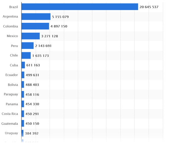 On 24 August 2021, according to Statista (2021a), Mexico ranked fourth among countries with the highest number of cases in Latin America, with more than 3 million confirmed cases (Figure 1).