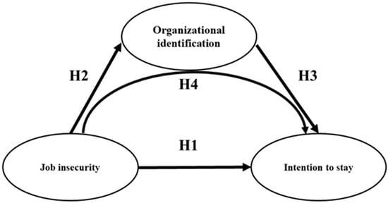 Because the aforementioned studies noted the significant effect of job insecurity on organizational identification and that of organizational identification on intention to stay, this study investigated whether organizational identification mediated the effect of job insecurity on intention to stay. Accordingly, this study posited H4: Employees’ job insecurity would affect their intention to stay in their job through the mediation of organizational identification.