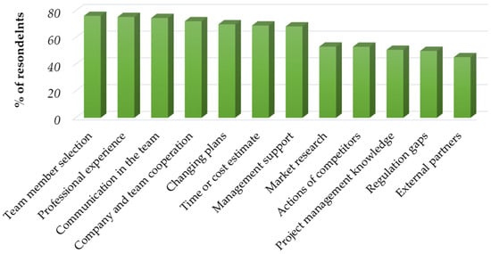 A voluntary online questionnaire was designed for data collection in Microsoft Forms. The questionnaire included twelve factors for assessment, as shown in Table 3. The factors included planning and regulation of the project, competencies of project management and team members, company issues, and external issues. Short names added to Table 3 describe the factors in the results for a simple review of the figures and tables of the paper.