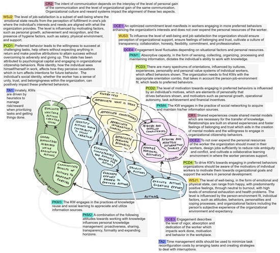 This paper executes the third activity in SSM, debating the situation, as well as using the findings to draft a descriptive theory of KWP. The purpose of the third activity in SSM, debating the situation, is to compare the PAMs created in the second activity with how others perceive the problem situation to initiate a discussion that highlights assumptions about the problem situation, finds accommodations among conflicting views and identifies actions for improvement (Checkland 2011). There are multiple roles in SSM that can be invited to debate the situation, such as clients (those who initiate the study of the problem situation), problem owners (who give different perspectives of the problem situation) and problem solvers (those who want to do something about the situation) (Checkland 1993). In this paper the PAM presented in Óskarsdóttir and Oddsson (2017) is debated from the perspective of the problem solvers using insights from a systematic literature review. The focus is on factors that are directly relevant to individuals and their work according to the PAM presented in Óskarsdóttir et al. (2021) but limited to the perspective of the individual KW.