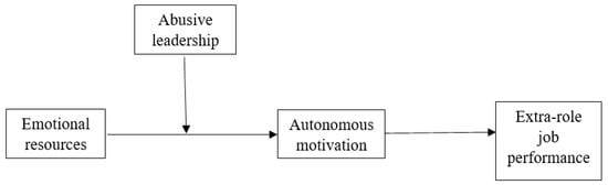 Hypothetical model. Note. See Table 3 for the indirect effects of emotional resources on extra-role job performance via autonomous motivation (Hypothesis 1). See Figure 2 and Table 3 for the moderated mediation effect of abusive leadership on the relationship between emotional resources and extra-role job performance.