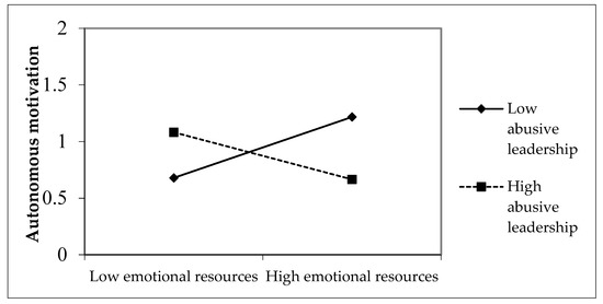Interaction effect of emotional resources and abusive leadership on nurse autonomous motivation.