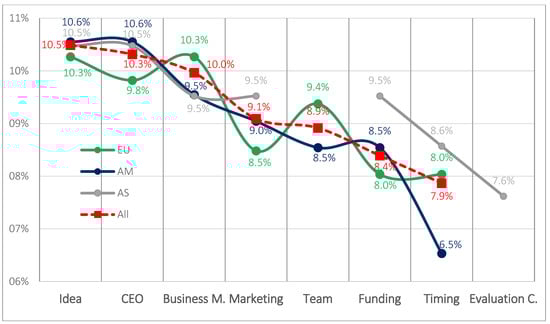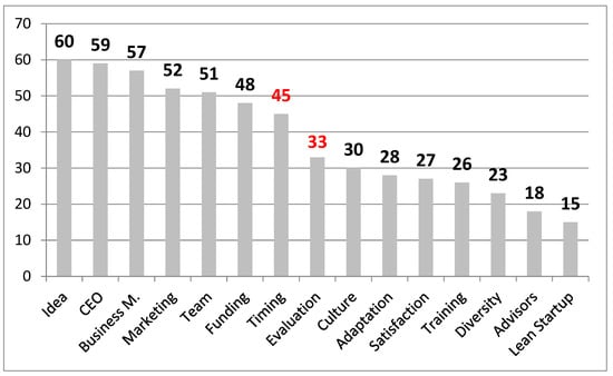 Next, a statistical analysis of the frequency of the words was carried out thereby generating a “ranking” of the factors suggested by the literature as drivers of success in startups, ranging from “most important” to “least important”. Subsequently we analyzed results searching for differences by country or continent (see Appendix A and Appendix B).