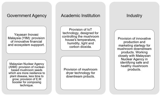KOKULAC was officially registered on 31 May 2010, but only became active in the mushroom business in 2018. Its mission is to improve the economic and social well-being of its members and community as well as knowledge advancement through technology transfer, training, and education via collaborations with government and non-government agencies. Its mushroom operation complies with the environmental sustainability agenda that aims for the zero-waste concept. Mushrooms were chosen as the primary product because it is a good source of nutrients that can be grown within a contained space and harvested in a very short time. Mushrooms are known to be one of the oldest foods known to man, have a high number of antioxidants, and are a natural immunity boost. Aside from being consumable as a meal, mushrooms also have healing effects on several human diseases and illnesses (Shirur et al. 2021). KOKULAC’s main pillar is social innovations along the production and supply chains. KOKULAC has worked closely with partners from government agencies, academic institutions, and the food industry by adopting an innovative collaboration model from the beginning of seed production to the marketing strategy. A diagram of how the system operates is shown in Figure 2.