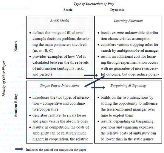 - Arend, Richard J. 2022. Strategic decision-making under ambiguity: Insights from exploring a simple linked two-game model. Operational Research, 1–17. [Google Scholar] [CrossRef]