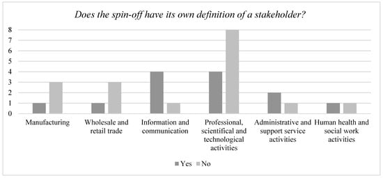 Chart showing whether the spin-off has its own definition about the term stakeholder per sector.